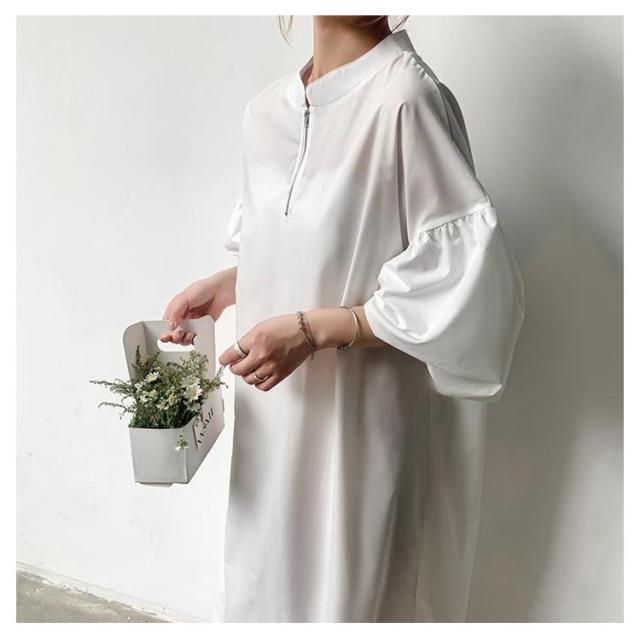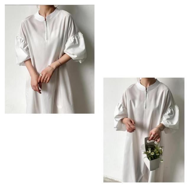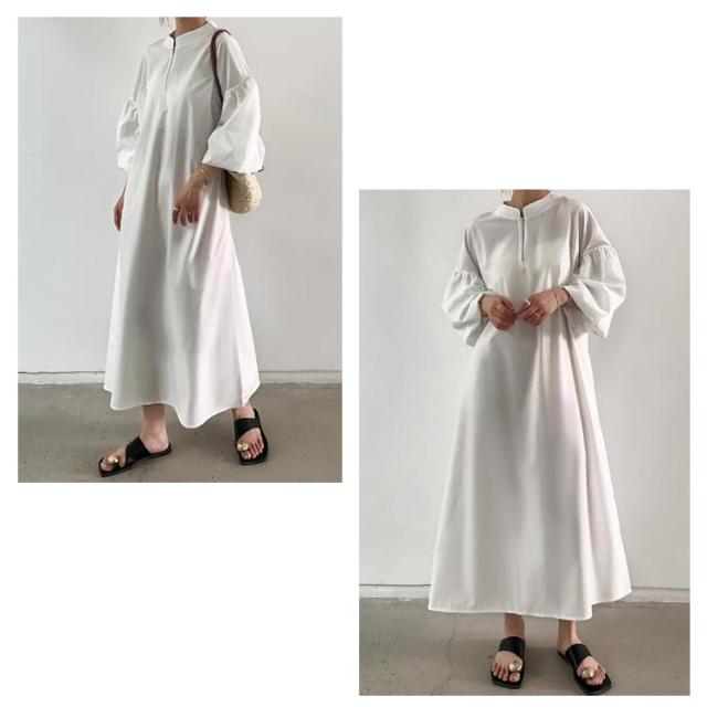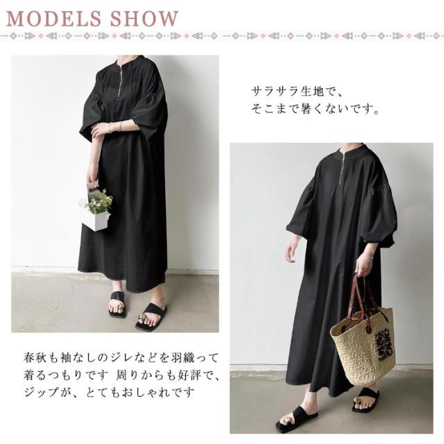 ワンピース ハーフジップワンピース ロングワンピース ボリューム袖 ハーフジップ ロング丈 オーバーサイズ レディース 2023秋冬 送料無料