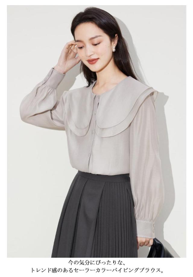 | 女性らしいトレンドスタイルが叶う、大人気のアイテムが再登場! 今の気分にぴったりな、トレンド感のあるセーラーカラーパイピングブラウス。 ふんわりとしたビッグカラーは肩を華奢に見せてくれます! 程よい透け感に、キャンディースリーブがフェミニンな女性らしさを演出。 さらりとした肌触りの生地は、落ち感のあるキレイめ素材。 シンプルなボトムスを合わせるだけで、新鮮な装いを叶えてくれるアイテム。 一枚着はもちろん、サロペットやカーディガンのインナーにもおすすめです♪ | |