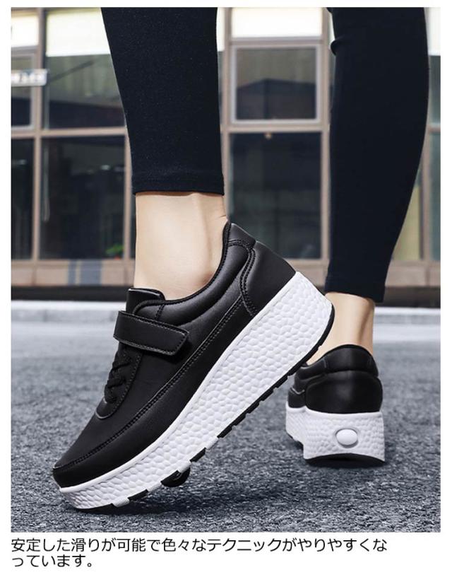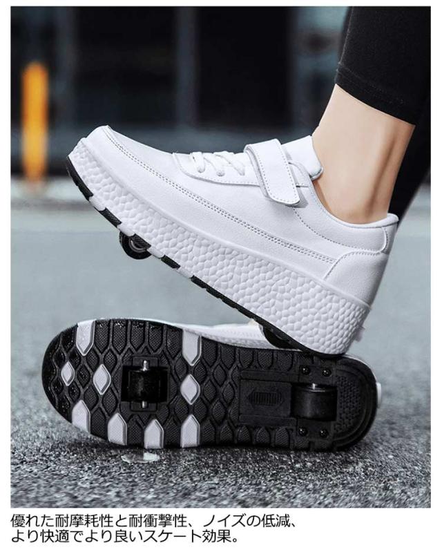 ローラーシューズ 2輪式 キッズ 大人 子供 メンズ レディース 男女兼用 ローラースケート 2way 2輪タイプ こども 男の子 女の子 学生 ジュニア おしゃれ ニーカー ローラースニーカー 運動靴 スポーツ ギフト 初心者 通気性 カジュアル 黒 白 ブラック ホワイト 送料無料