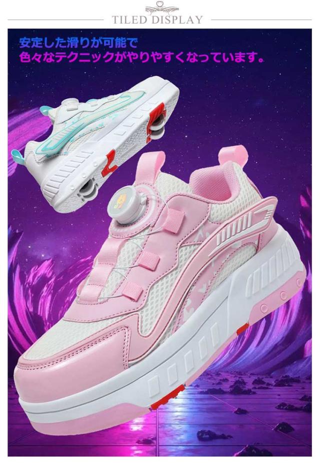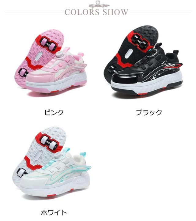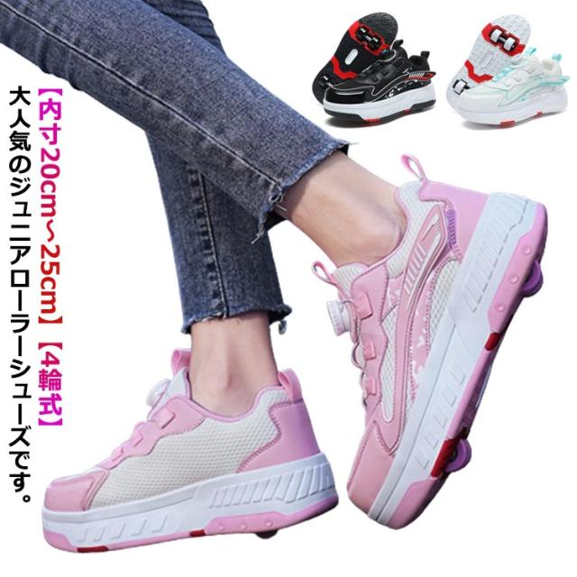 送料無料 ローラーシューズ ローラースケート 4輪 キッズ 大人 子供 スニーカー靴 レディース靴 女の子 男の子 子供用運動靴 スポーツ スニーカー 4輪式 ブラック ホワイト ピンク 20.5cm〜25cm