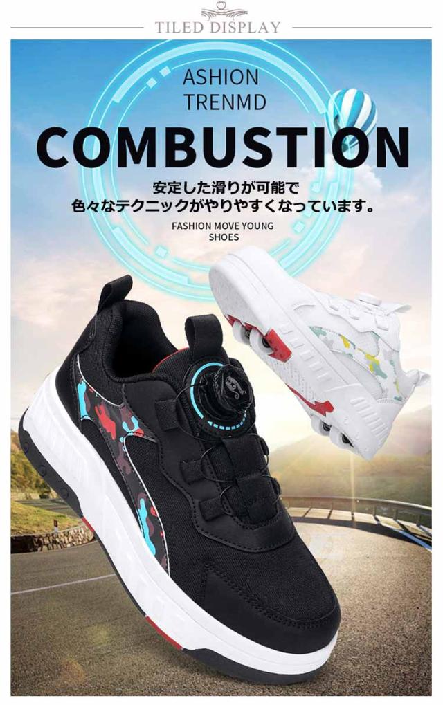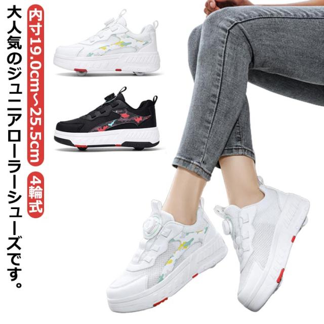 送料無料 ローラーシューズ ローラースケート 4輪 キッズ 大人 子供 スニーカー靴 レディース靴 女の子 男の子 子供用運動靴 スポーツ スニーカー 4輪式 ブラック ホワイト ピンク 20.5cm〜25cm