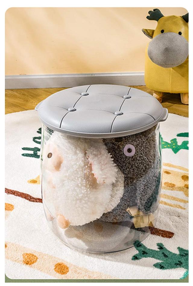 収納スツール 収納ボックス ぬいぐるみ 収納 大容量 クリア 透明 おもちゃ収納ボックス フタ付き 収納ケース スツール 収納 防塵 椅子 いす 腰掛け ストレージチェア イス オットマン 足置き 踏み台 子供部屋 小物収納 展示ボックス