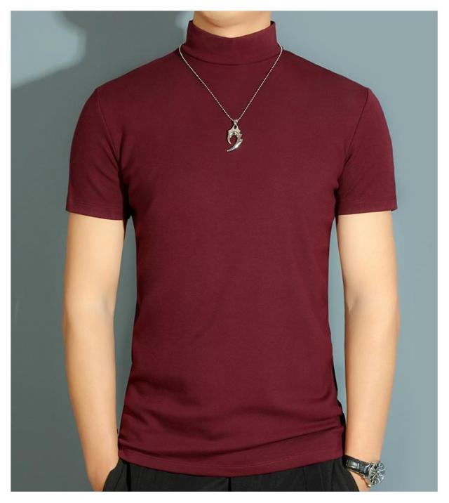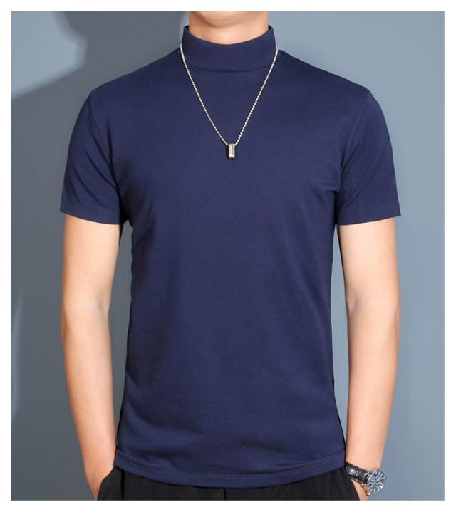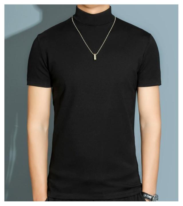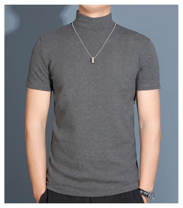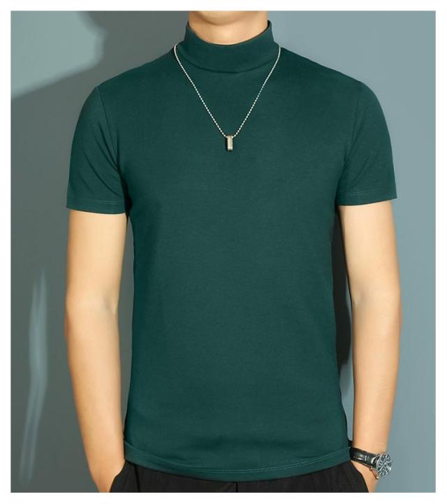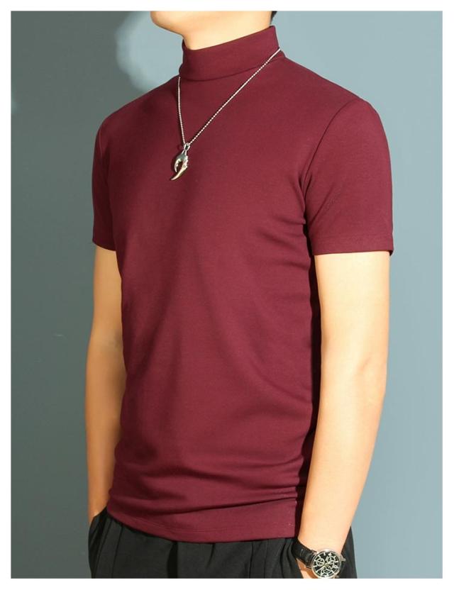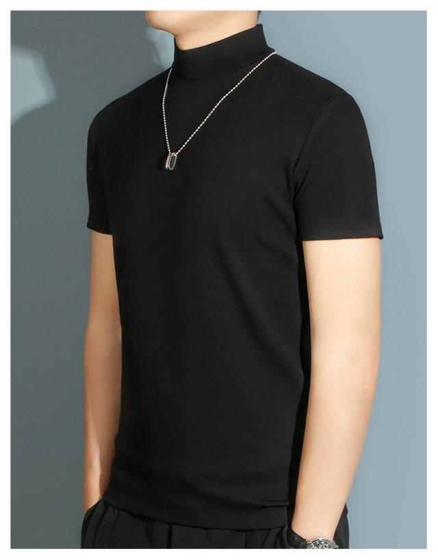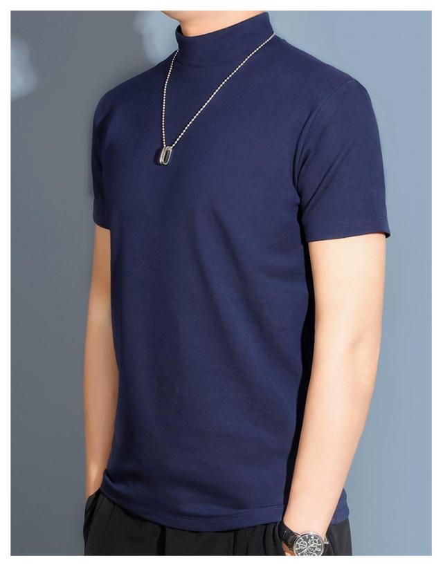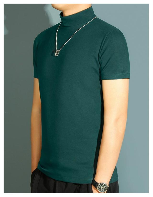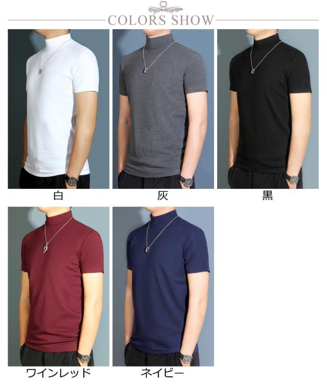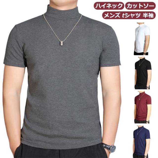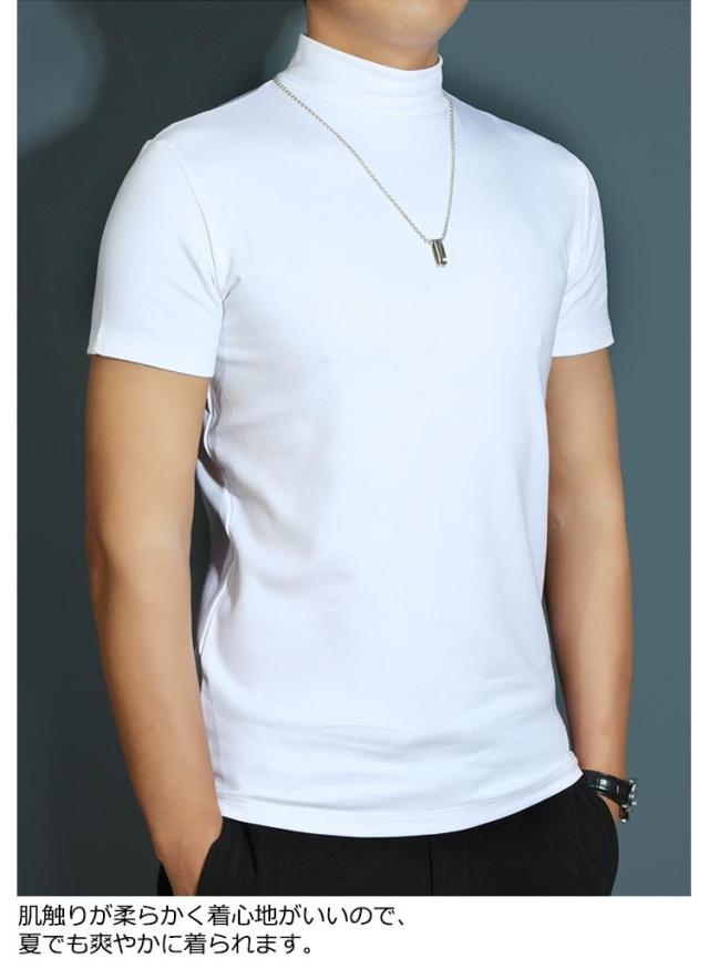【送料無料】 ハイネック カットソー メンズ tシャツ 半袖 半袖Tシャツ ゆったり 無地tシャツ 襟高さ4-5cm ハイネックtシャツ 夏 ティーシャツ トップス 春秋 ゴルフウェア カジュアル 大きいサイズ シンプル