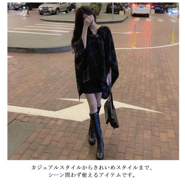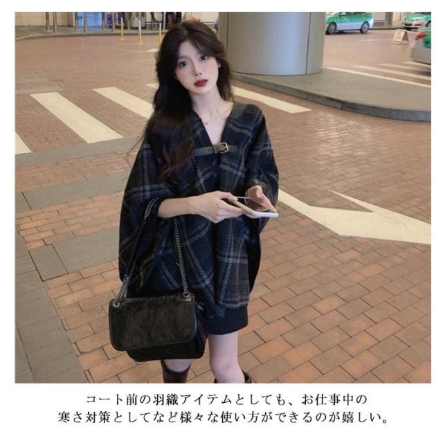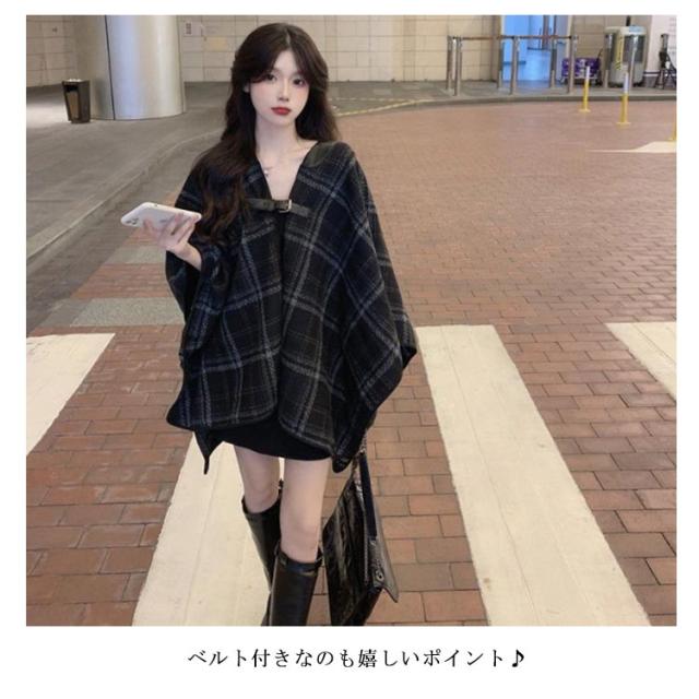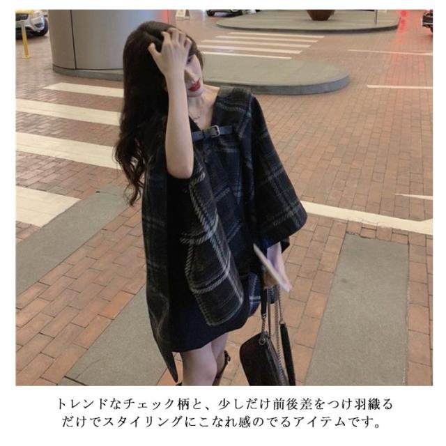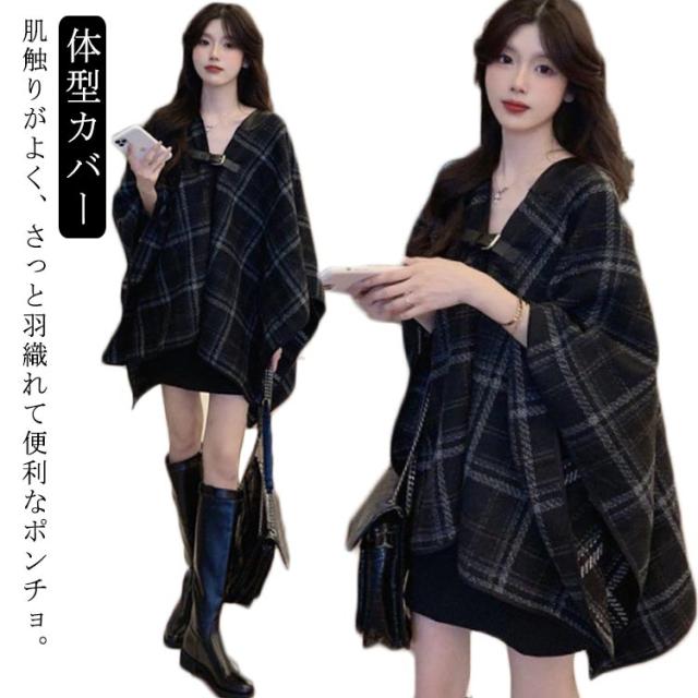 ポンチョ コート カーディガン ストール ケープ ジャケット マント ショール レディース アウター ベルト付き 羽織 羽織り チェック柄 上品 暖かい 防寒 体型カバー 春秋 春服 秋服 秋 冬 送料無料