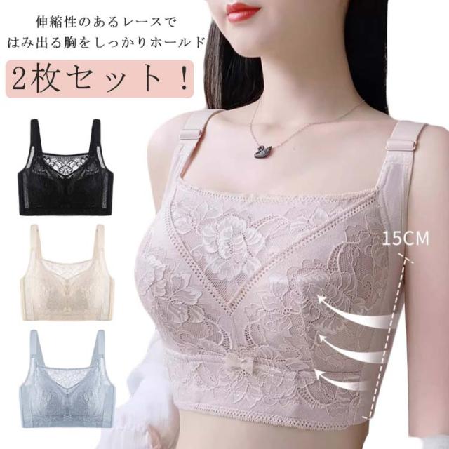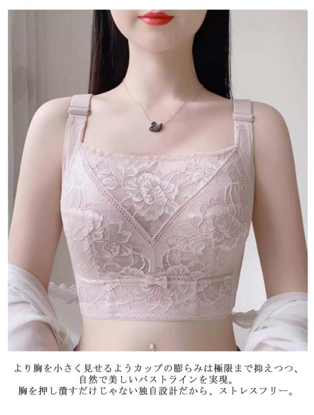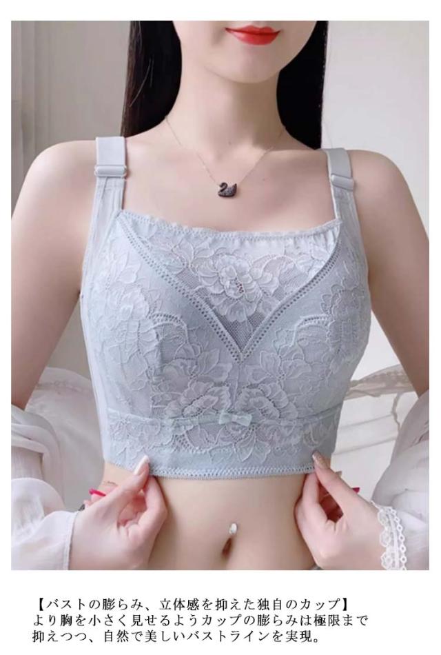 2枚セット!胸を小さく見せるブラ ブラ ノンワイヤー 垂れ 小さく見せるブラジャー 下着 着?せブラ 補正下着 着痩せ 花柄レース 大きいサイズ レースブラ ブラジャー かわいい 大人 着やせ インナー 薄い