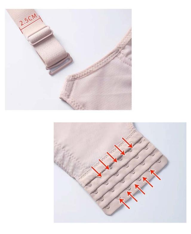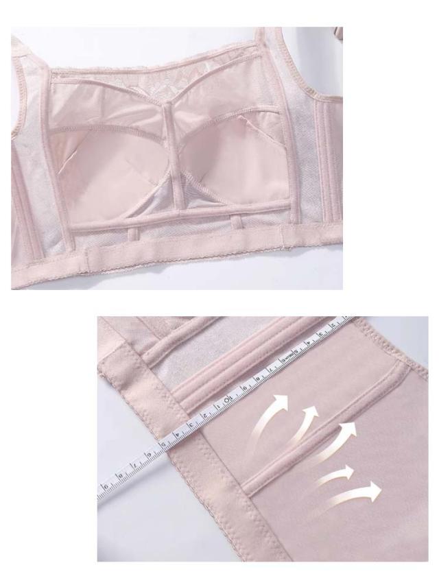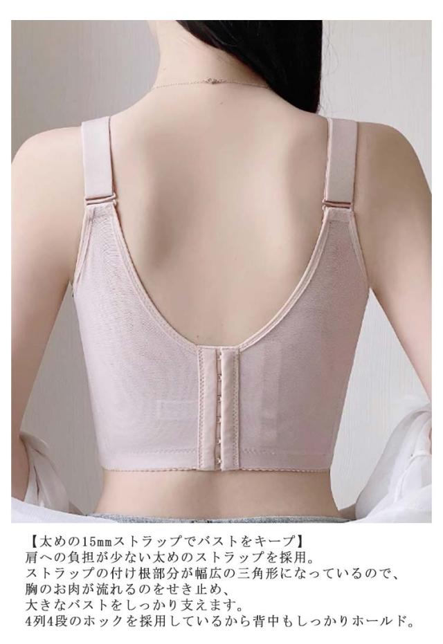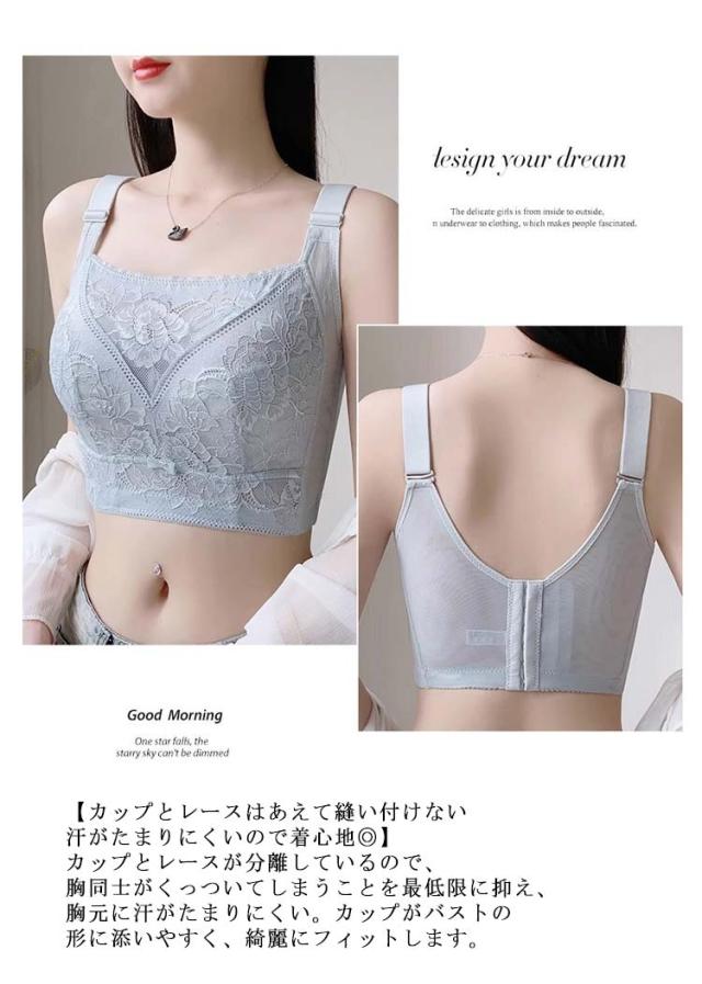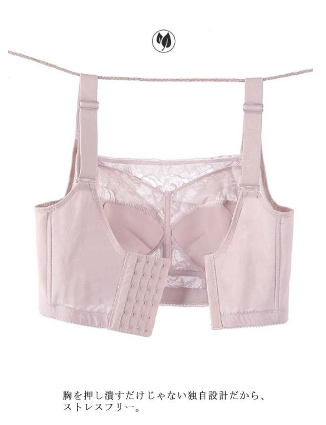 | 【バストの膨らみ、立体感を抑えた独自のカップ】より胸を小さく見せるようカップの膨らみは極限まで抑えつつ、自然で美しいバストラインを実現。胸を押し潰すだけじゃない独自設計だから、ストレスフリー。 【伸縮性のあるレースではみ出る胸をしっかりホールド】フロント上部に伸縮性のあるゴムを入れ、視線が気になる谷間部分も高級感のあるラッセルストレッチレースでしっかりガード。さらに小胸に見えるよう設計しました。バスト全体をレースで覆っているので苦しくなりません。 【バストの膨らみ、立体感を抑えた独自のカップ】より胸を小さく見せるようカップの膨らみは極限まで抑えつつ、自然で美しいバストラインを実現。胸を押し潰すだけじゃない独自設計だから、ストレスフリー。 【脇高設計!Wのボーンで流れるお肉をしっかりキャッチ】脇高のWボーンでお肉が脇に流れるのを防ぎ、気になるはみ肉の凸凹もスッキリ綺麗に。より脇のほうまでワイヤーを伸ばすことで、脇肉を集めてシルエットをスッキリさせます。 【太めの15mmストラップでバストをキープ】肩への負担が少ない太めのストラップを採用。ストラップの付け根部分が幅広の三角形になっているので、胸のお肉が流れるのをせき止め、大きなバストをしっかり支えます。4列4段のホックを採用しているから背中もしっかりホールド。 【カップとレースはあえて縫い付けない 汗がたまりにくいので着心地◎】カップとレースが分離しているので、胸同士がくっついてしまうことを最低限に抑え、胸元に汗がたまりにくい。カップがバストの形に添いやすく、綺麗にフィットします。 | |