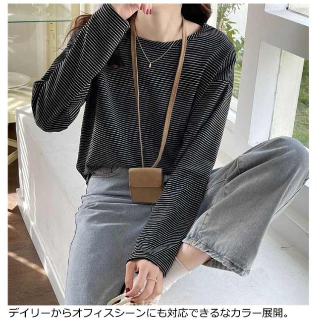 tシャツ ランドネック Uネック レディース トップス 長袖 ロング ロンt シンプル カットソー 春 秋 冬 ゆったり 韓国 インナー 部屋着 ルームウエア オフィス 通勤