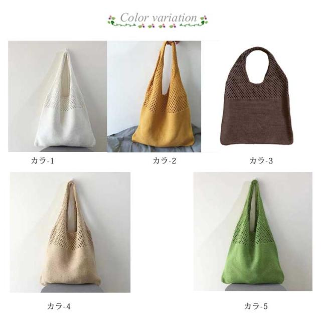 トートバッグ かごバッグ 肩掛け レディース 女性 編みバッグ ニット編み 大容量 ニットバッグ サマーバッグ エコバッグ 軽量 折り畳み 春夏秋 無地 お洒落 通勤 通学 送料無料