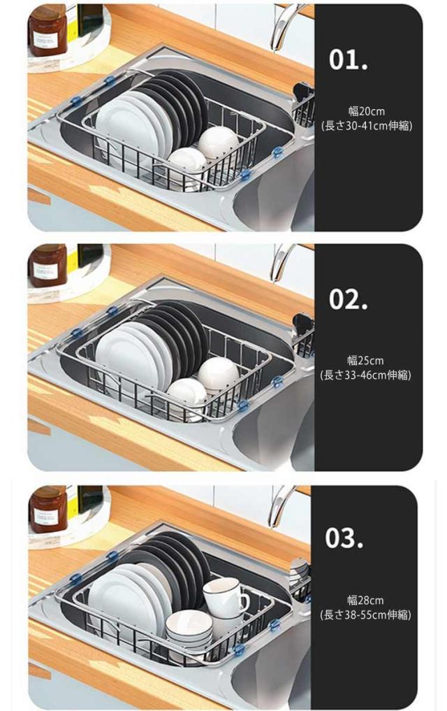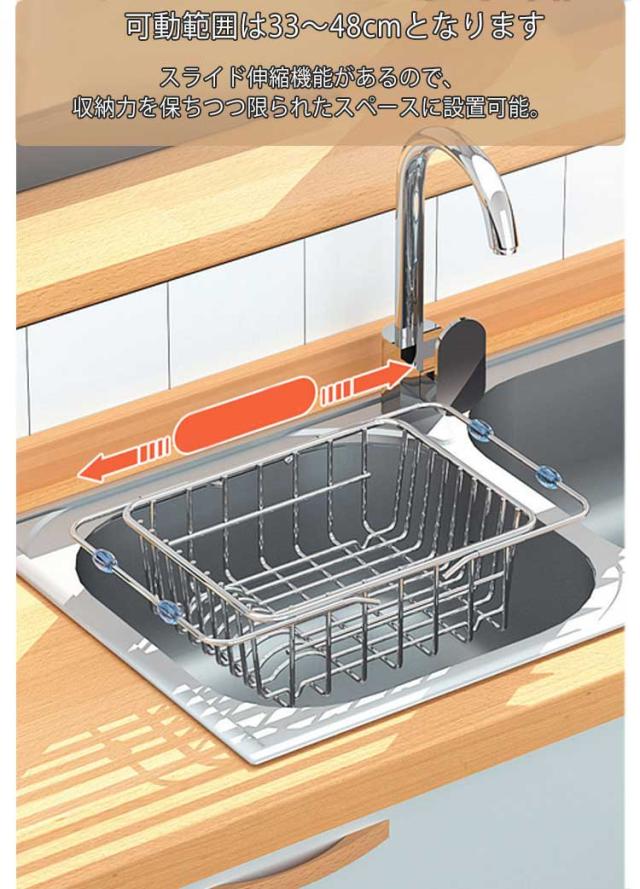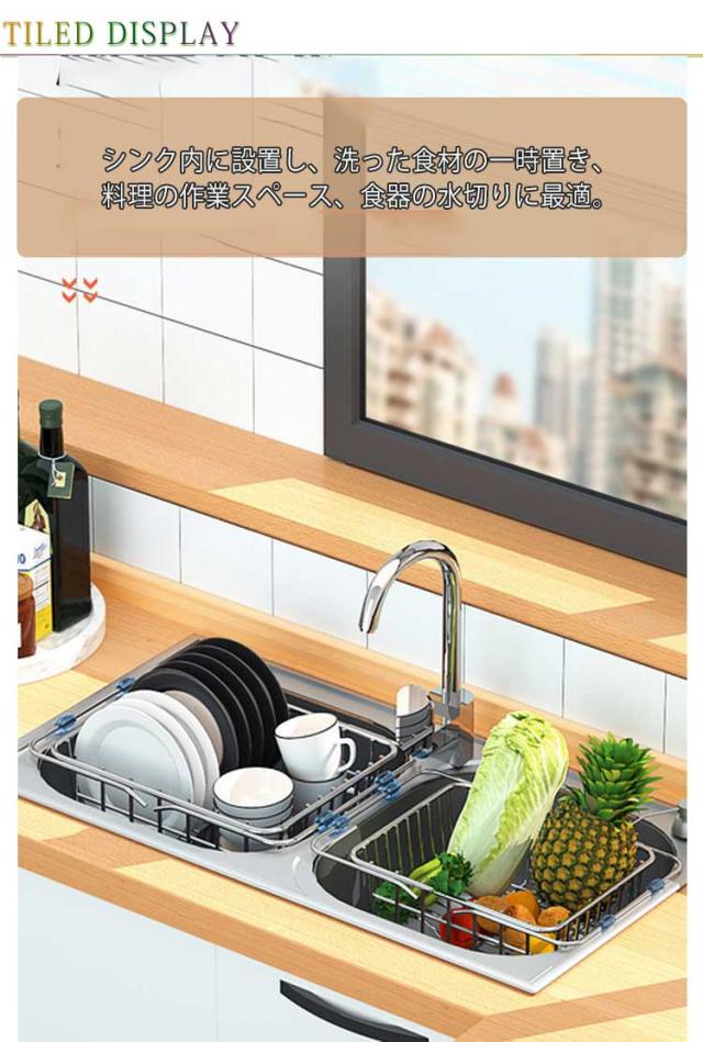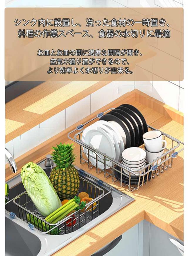 水切りラック 水切りかご ステンレス 伸縮式 シンク上 水切りバスケット 食器置き コンパクト お碗 お皿 収納 コップ 乾かす スタンド スリム 狭いキッチン 作業台 便利 錆びにくい