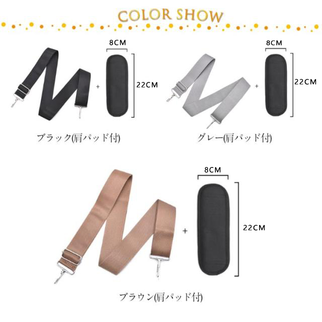 | 色 | ブラック(肩パッド付) グレー(肩パッド付) ブラウン(肩パッド付) |