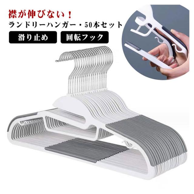 ハンガー すべらない 50本セット ランドリーハンガー 襟が伸びない 多機能ハンガー ノンスリップ 滑り止め 回転フック 跡がつかない 省スペース 滑らないハンガー 変形にくい 収納 洗濯 物干し スリム 新生活 引っ越し