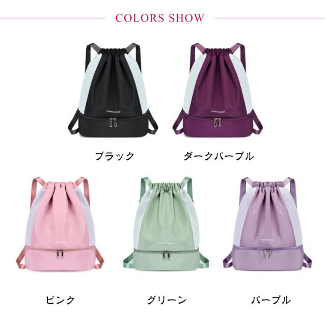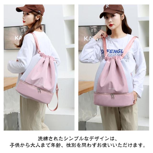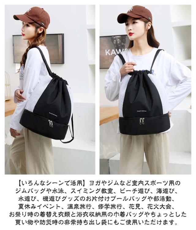 スポーツバッグ 2層 乾湿分離 ジムサック リュック 旅行 プールバッグ ナップザック スイミングバッグ 巾着リュック ビーチバッグ ダンスバッグ 軽量 スイムバッグ ヨガ 水泳バッグ 大容量 シューズケース キッズ 大人 女の子 中学生 高校生 男の子 子供 撥水