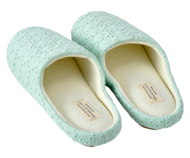 涼しげな印象と女性らしいフェミニンさを演出できるレース素材のルームシューズです。ナチュラルなインテリアにも馴染む、上品なデザインとパステルカラーが足元をかわいくコーディネイトしてくれます。
