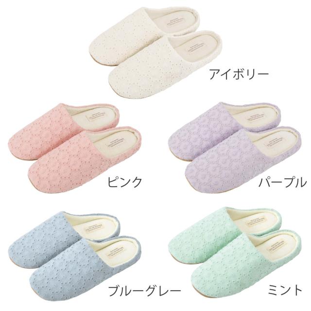 ルームシューズ ルポゼ 23.0〜24.5cm パステルカラー レース柄 ( スリッパ 洗える レディース 女性 ルームスリッパ 室内 パイル地 室内履き 来客用 部屋履き オールシーズン 手洗い )