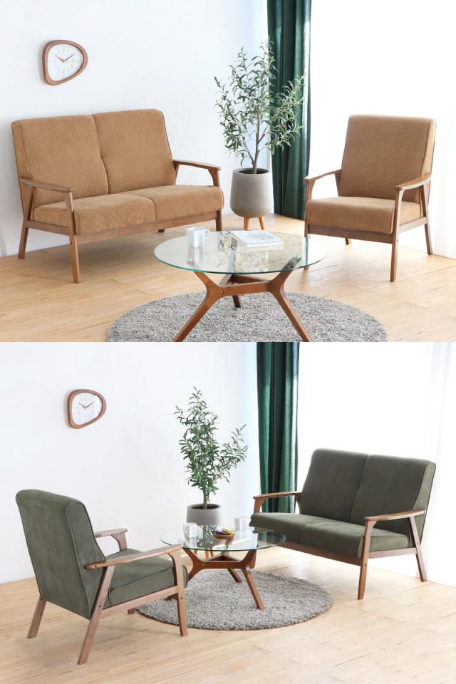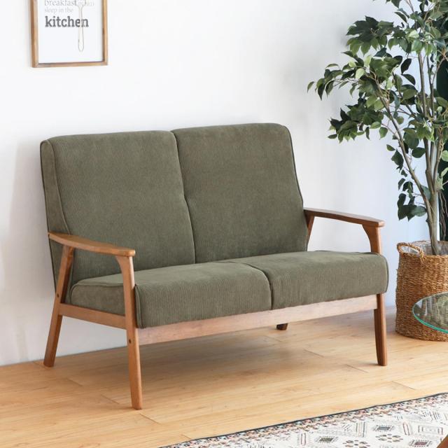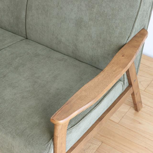 シンプルなデザインと色合いがマッチした飽きのこないソファです。コーデュロイの温かみのある生地で、2人掛けに丁度いいサイズ感です。カントリーテイストの雰囲気で、木を使った家具をインテリアに取り入れることで柔らかい雰囲気のお部屋にしてくれます。