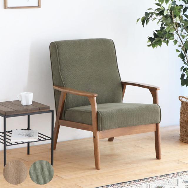 コーデュロイ生地の張地は心地よい手触りがクセになります。馴染みやすいベージュと、アクセントになるグリーンのレトロな2色展開ですので、お好みの色がお選びいただけます。