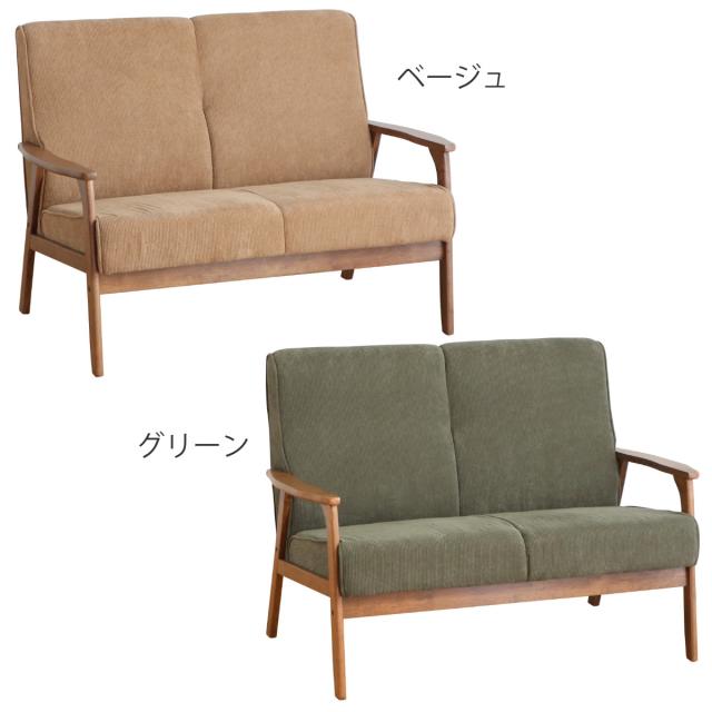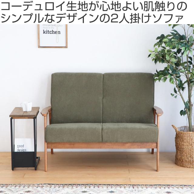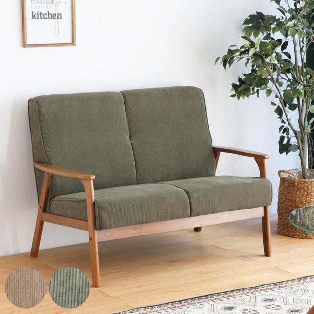 ソファ 2人掛け 天然木肘付き コーデュロイ カントリー調 幅116cm ( 二人用 2人用 ソファー 木製フレーム 肘付き 肘掛 北欧風 おしゃれ ナチュラル )