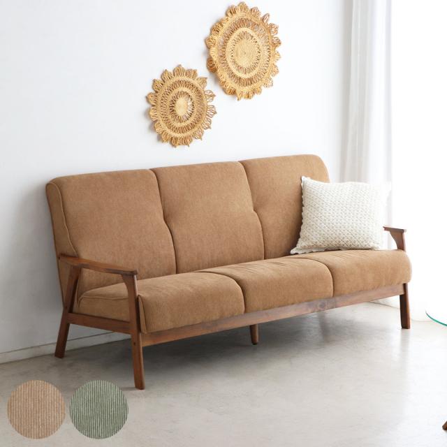 ソファ 3人掛け 天然木肘付き コーデュロイ カントリー調 幅170cm ( 三人用 3人用 ソファー 木製フレーム 肘付き 肘掛 北欧風 おしゃれ ナチュラル )