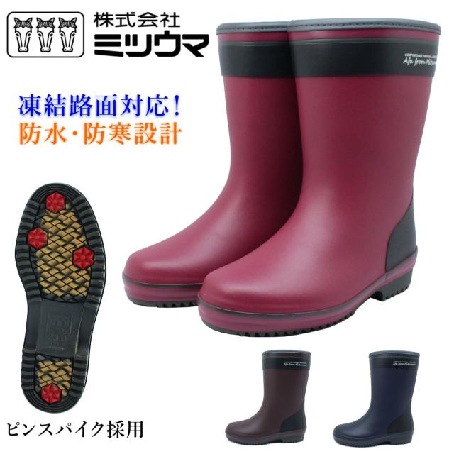 ミツウマ レディース スパイク付き 長靴 エーファ No.4050 MUNS レインブーツ ハーフブーツ 軽量 防寒 防水 防滑 雨 雪