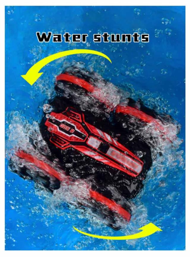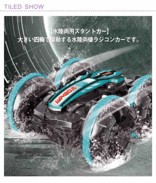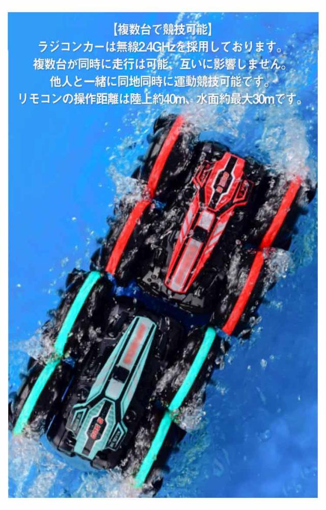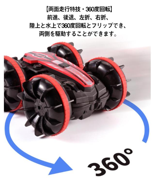 ラジコンカー 水陸両用 オフロード対応 両面走行 ラジコン車 陸上 水上 防水 四輪駆動 四駆 360度 回転 USB充電式 電池式 簡単操作 転倒しない リモコンカー スタントカー コントローラー 子供向け 子供 おもちゃ 玩具 ギフト プレゼント レッド グリーン 2色