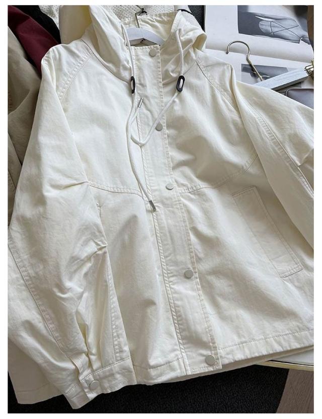薄手 アウター レディース 春 秋 マウンテンパーカー ブルゾン 裏地付き 韓国 カジュアル ジャケット ライトアウター ショート丈 秋アウター ゆったり 学生 大人 20代 30代 40代 通勤 通学 パーカー ホワイト ブラック ベージュ ピンク 【送無】