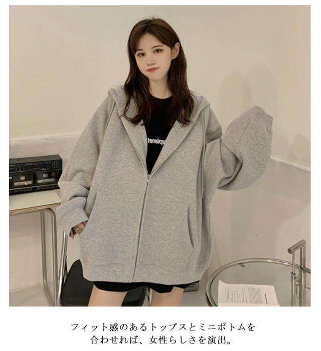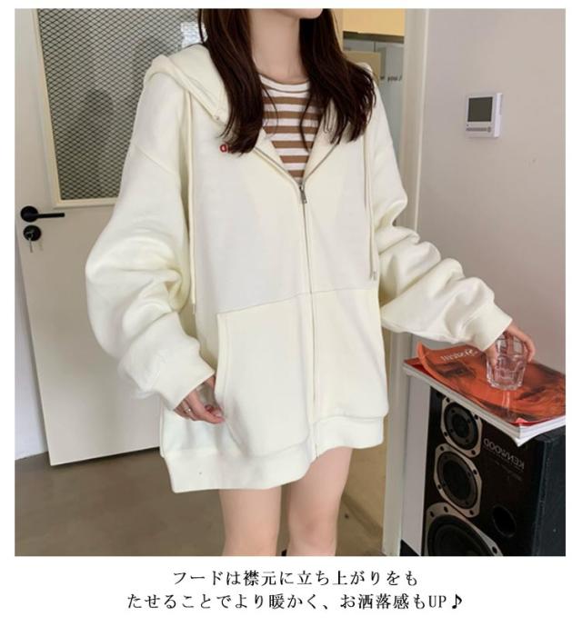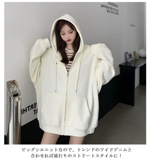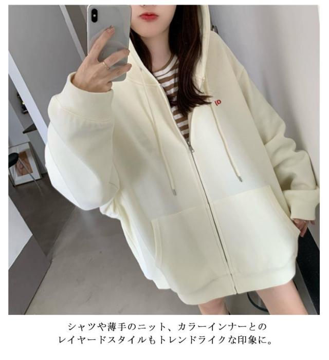 送料無料 パーカー レディース 長袖 スウェットパーカー ジップパーカー オーバーサイズ 前開き ドロップショルダー フード付き トップス 羽織り ジップアップ フーディー アウター 大きいサイズ 春秋