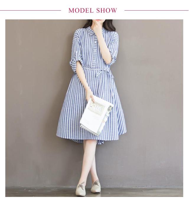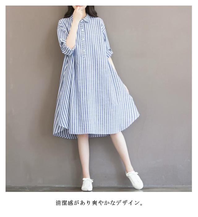 シャツワンピース 綿麻 ストライプ ワンピース レディース 大きいサイズ マキシワンピース ゆったり 30代 40代 Vネック 長袖 ゆったり 体型カバー ロングワンピース カジュアル きれいめ オシャレ 送料無料
