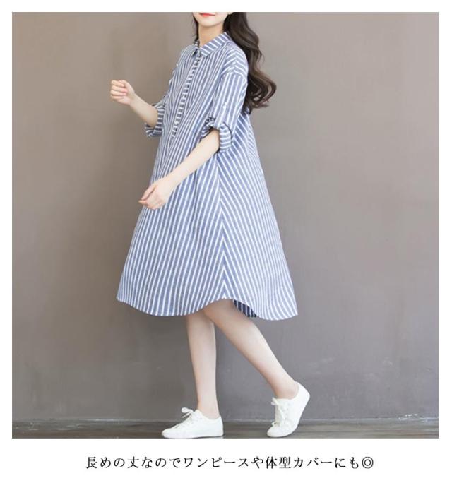 | チュニックとしてジーンズやレギンスなどに合わせてても◎ 長めの丈なのでワンピースや体型カバーにも◎ 清潔感があり爽やかなデザイン。 気温の変化に合わせて袖をロールアップして調整していただけます。 使い回しが抜群なシャツとなっております。 20代 30代 40代 ママコーデ マタニティとしてお使い頂けます。 | |