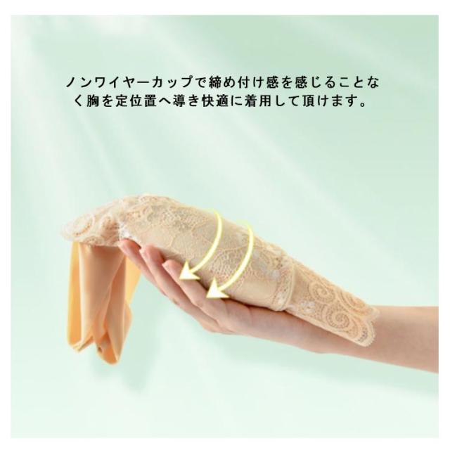 | しっかりフィットする快適フィットのレースナイトブラ。 ショルダー部分も幅広く出来ていますので肩が凝りにくく、脇肉、背中肉がはみ出にくく綺麗なシルエットを作ります ホック等はありませんので金属アレルギーの方も安心して着用いただけます。 ノンワイヤーカップで締め付け感を感じることなく胸を定位置へ導き快適に着用して頂けます。 柔らかく伸縮性があるので、風呂上がりでも身体にまとわりつかず、楽に着れます。 さらっとした肌触りの良い生地で、オールシーズンご利用いただけます。 | |