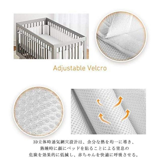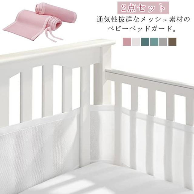 2点セット ベビーベッドガード メッシュ 通気 ベッドバンパー 夏用 空気循環可能なベッドガード 赤ちゃん サイドガード ベビーベッド用 転落防止 ケガ防止 洗濯可能 安全性 収納便利 布団落下防止 ベビーケア用品 新生児 出産祝い ギフト プレゼント 送料無料