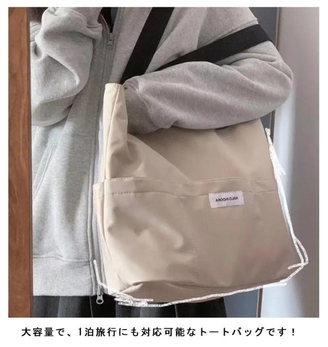 | 大容量で、1泊旅行にも対応可能なトートバッグです! 軽くて丈夫な素材を使用しております 通学通勤におすすめ! | |