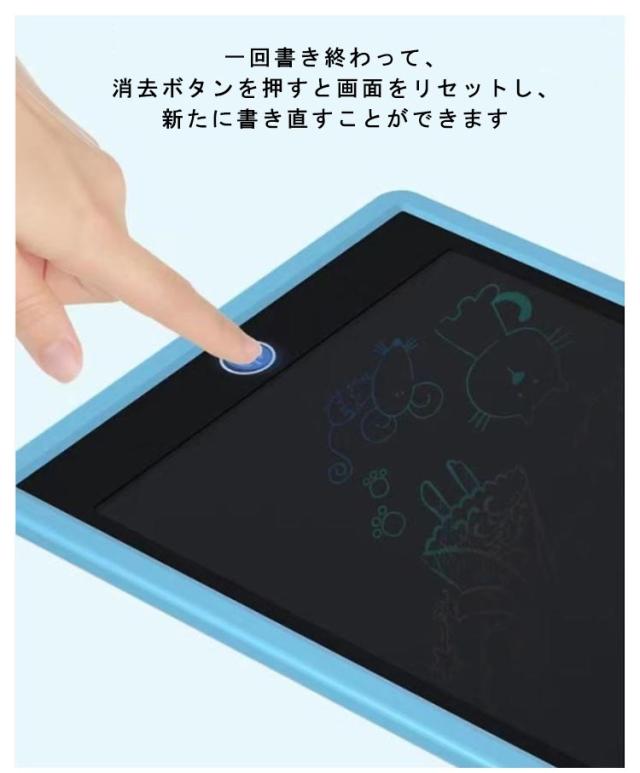 | 繰り返し利用できます 一回書き終わって、消去ボタンを押すと画面をリセットし、新たに書き直すことができます 小さなお子さまにも安心してお使いいただけます | |