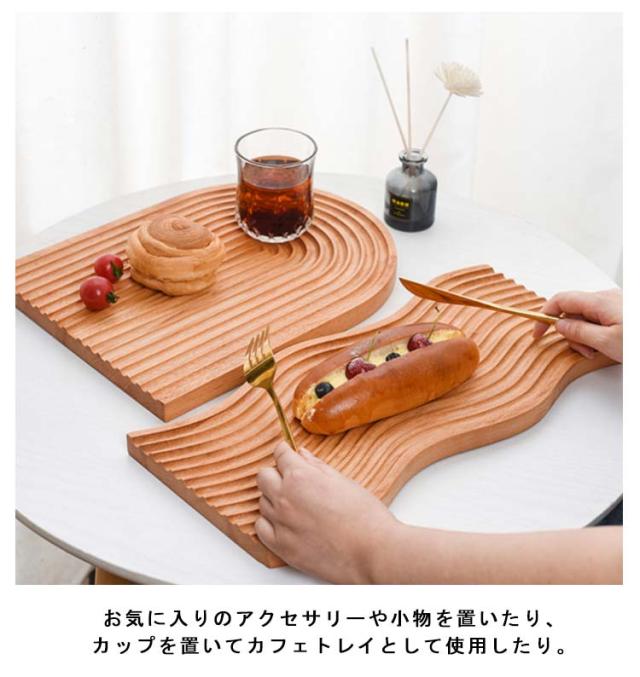 | 自宅でカフェ気分を味わえる、ウッドプレート。天然木で作られたナチュラルなウッドプレート。 表面はラインに沿って深く掘られ、波型とアーチ型にカットされています。 パンやマグカップを乗せて トレイにすれば、お家でおしゃれな カフェ気分を味わえます! どんなシーンにでも使いやすいデザインのウッドトレイなので、アクセサリーや鍵、腕時計などの小物置きとしてもGood! お気に入りのアクセサリーや小物を置いたり、カップを置いてカフェトレイとして使用したり。 壁に立てかけてオブジェとしてお部屋に飾るのもおすすめです。 | |