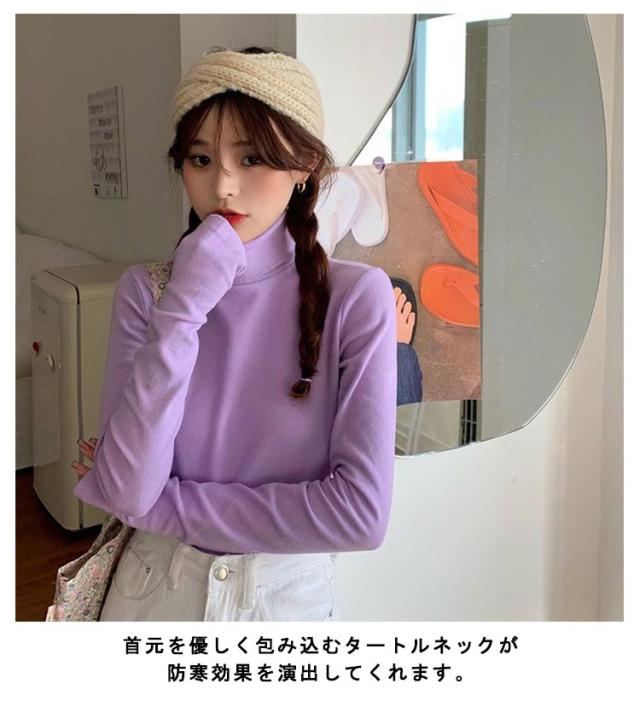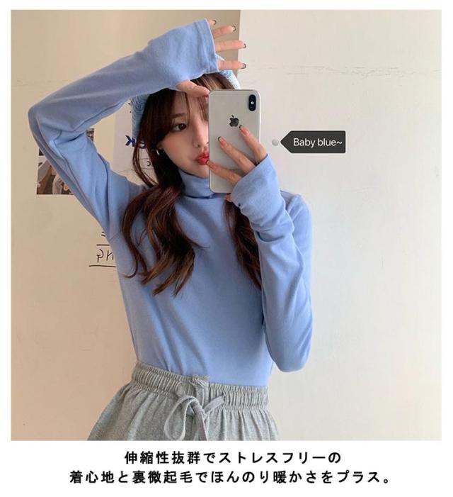| ほんのりと立ち上がるハイネックデザインが女性らしいシンプルなカットソー。 首元を優しく包み込むタートルネックが防寒効果を演出してくれます。 フィットするデザインでシュッとしていますが、生地は柔らかく伸縮性もありダブつかないので快適です。 重ね着やインナーとして使用するうえで、柔らかく、よく伸びるストレッチ素材ですので大変着心地が良いです。 伸縮性抜群でストレスフリーの着心地と裏微起毛でほんのり暖かさをプラス。 インナーや一枚着として着回しできる優秀なアイテムです。 | |
