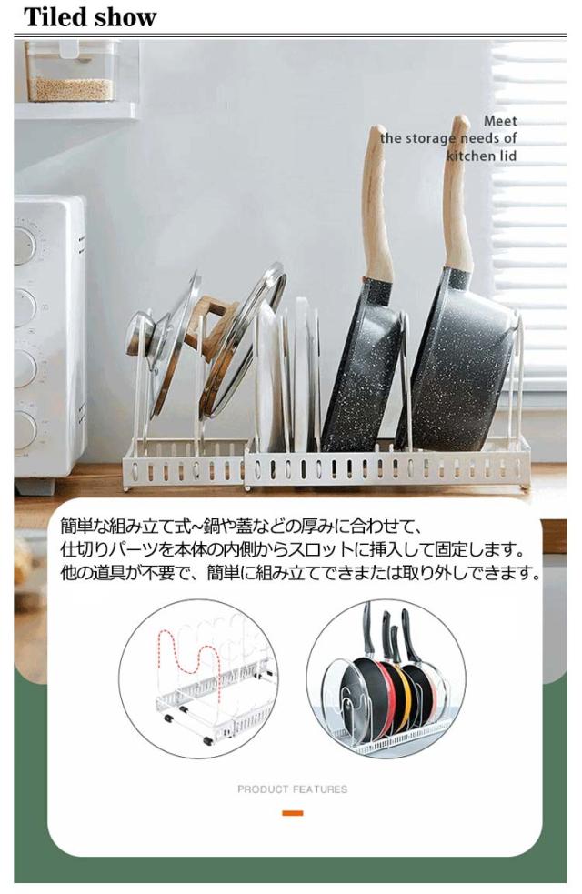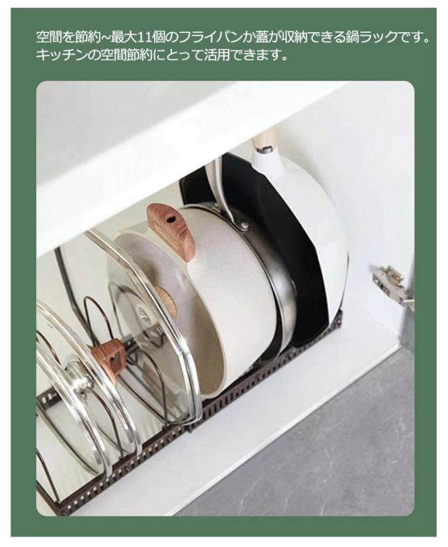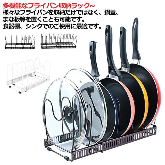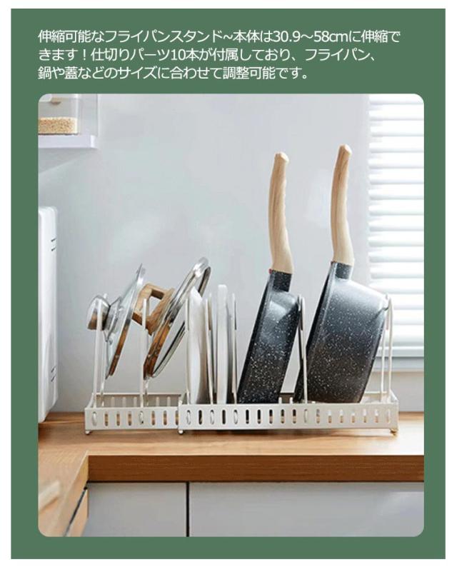 伸縮式 フライパンラック キッチン 鍋収納ラック 10本仕切りパーツ付き フライパン 鍋 鍋蓋置き シンク下 伸縮 鍋蓋 フライパン スタンド 鍋ふた スタンド 鍋蓋 ラック 伸縮式 フライパン ラック 鍋蓋ホルダー キッチン収納