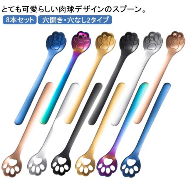 猫 スプーン 8本入 ねこ 肉球 コーヒースプーン デザートスプーン ケーキ ステンレス カトラリー 穴開き・穴なし2タイプ かわいい 猫 ネコ キャット 肉球 スプーン 子供 雑貨 キッチン カフェ かわいい 猫好きさん プチギフト プレゼント 猫柄 食器 猫雑貨 送料無料