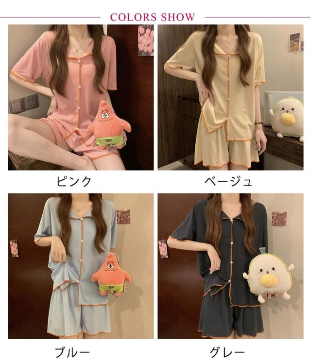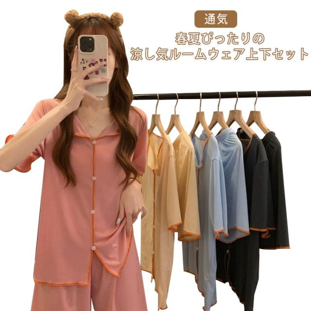 パジャマ レディース ルームウェア セットアップ 上下セット 半袖 夏用 涼しい 薄手 ゆったり 部屋着 寝巻き 入院 旅行 通気