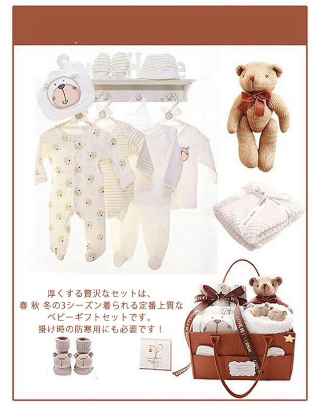 | サイズについての説明 | セット内容:トップス*1、ボトムス*1、カーディガン*1、ロンパース*1、セット*1、帽子*1、ミトン*1、帯留めの下着*1、クマ人形*1、立体靴下*1、毛布(冬おくるみ)*1、ママのバッグ*1、ギフトバッグ*1、ライトストリング*1、お祝いカード*1 |
