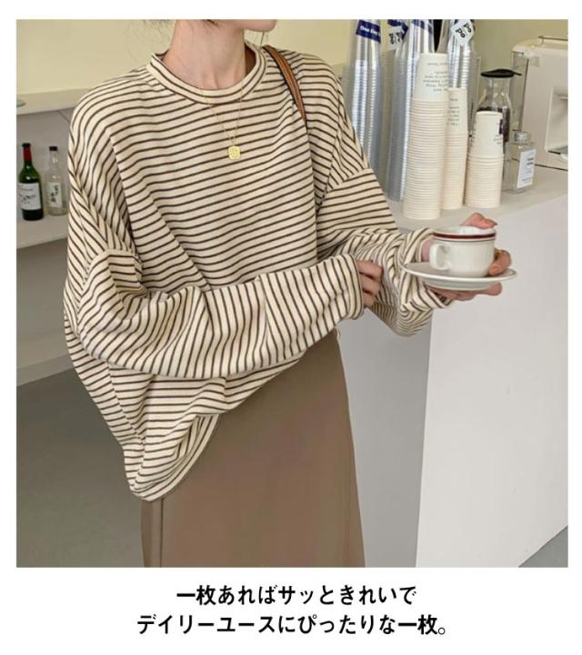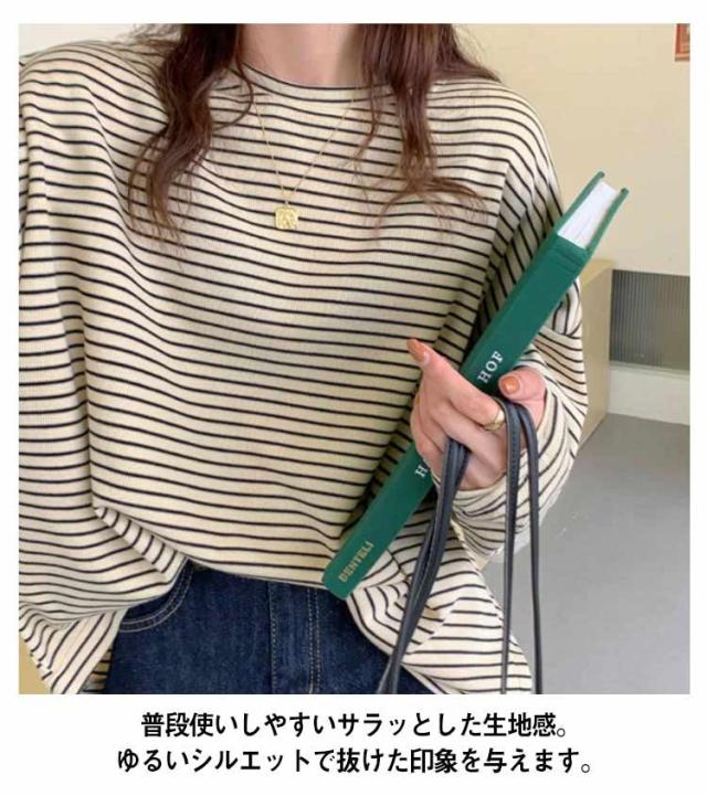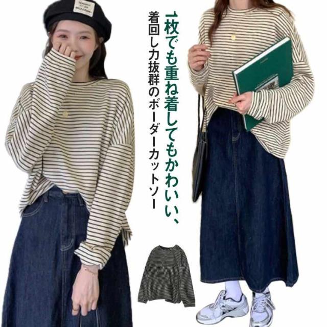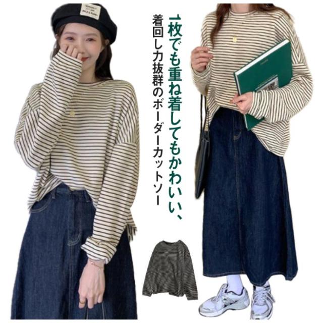 ボーダー tシャツ カットソー トップス レディース 長袖 ロンT 春秋 冬 カジュアル ゆったり 体型カバー 大きいサイズ オーバーサイズ 韓国風 ドロップショルダー プルオーバー 着?せ 重ね着 学生 おしゃれ 通勤 通学 送料無料