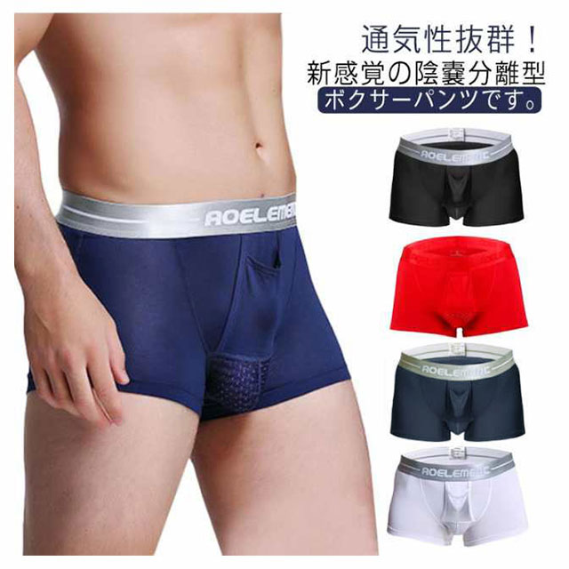 | ・通気性抜群!新感覚の陰嚢分離型ボクサーパンツです。 ・立体裁断により、【陰嚢分離型】なのでベタつかず通気性バツグン、清潔で快適さを保ちます。 ・通気性にすぐれ、吸湿性も高いので蒸れる心配はありません。 ・フロント部分に、通気性のよい素材を使用。ムレによる不快感を軽減。 ・立体裁断なので、激しい運動、スポーツをしても、快適にフィットします。 | |