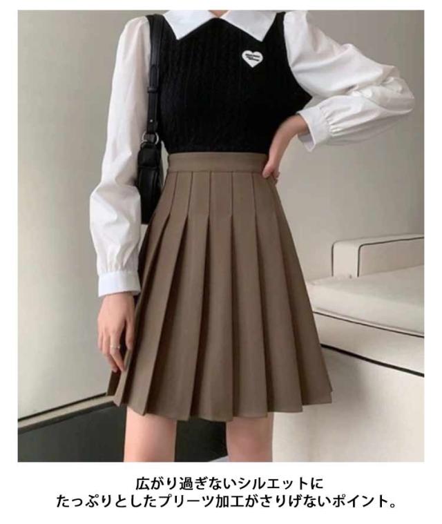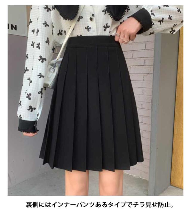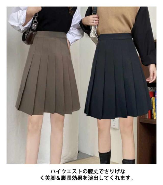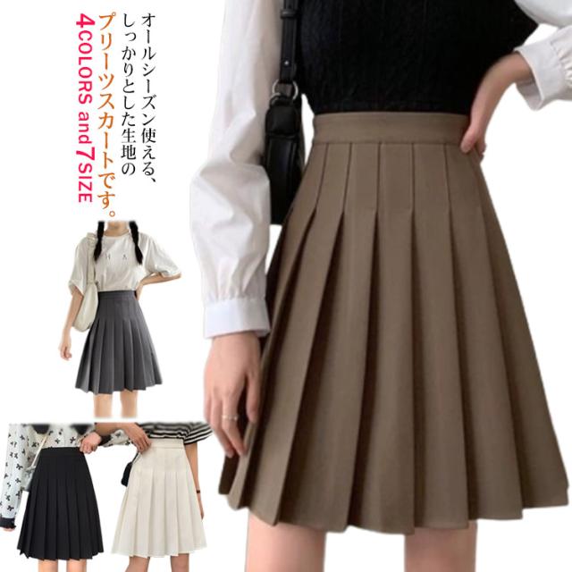 プリーツスカート 制服 スカート 送料無料 膝丈 スクールスカート 学生服 女の子 プリーツ ハイウエストスカート Aライン シンプル 無地 裏地付き チラ見せ防止 安心 大きサイズ 茶色 ブラック グレー ホワイト