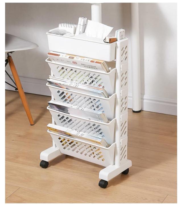 ファイルワゴン キャスター付き マガジンラック デスクサイド収納 5段 ホワイト 白 書類整理 収納棚 ファイル立て 雑誌収納 本収納 新聞収納 本棚 スリム 棚 移動 小物収納 文房具収納 新聞ラック 両面 テレワーク 北欧 おしゃれ 省スペース 組み立て
