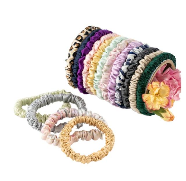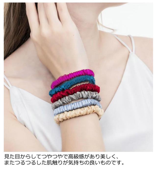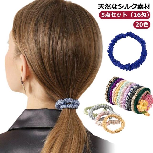 【5点セット 20色】ヘアゴム シルク シュシュ 細い 可愛い 16匁 silk シルクシュシュ 幅1cm 黒 白 ヘアアクセサリー 髪留め レディース 女の子 髪ゴム リングゴム シルクヘアシュシュ 髪飾り シルク製 静電気防止 送料無料