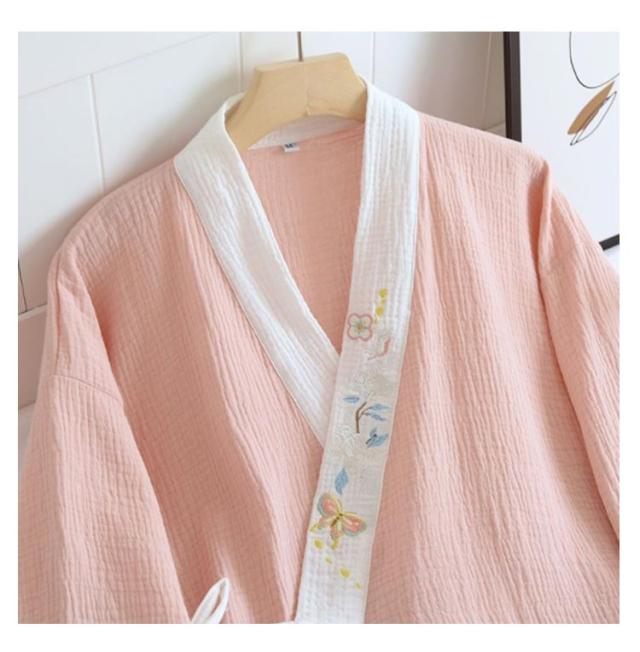 ガーゼパジャマ ねまき レディース ルームウェア 和風 甚平 浴衣 二重 ガーゼ 前開き 五分袖 通気性 吸汗吸湿 綿 コットン 女性 寝間着 部屋着 作務衣 お風呂 旅館 浴衣 ホテル 上下セット 春 夏 秋