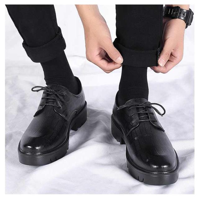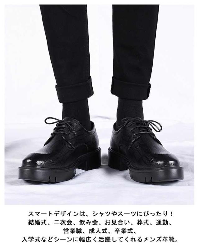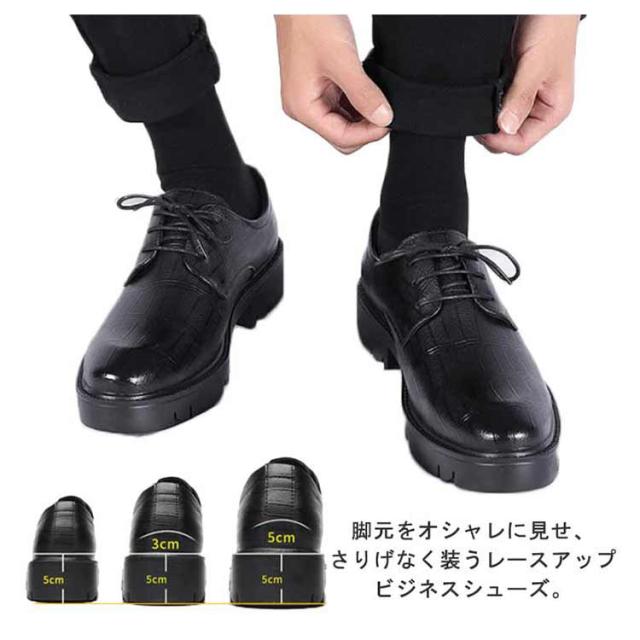 シューズ フォーマル ビジネス 結婚式 メンズ靴 シークレットシューズ メンズ ビジネスシューズ 6/8/10cmアップ 革靴 紳士靴 紐靴 外羽根 背が高くなる 身長アップ 靴 歩きやすい 防滑 滑りにくい ショートブーツ レースアップ 黒 ブラック