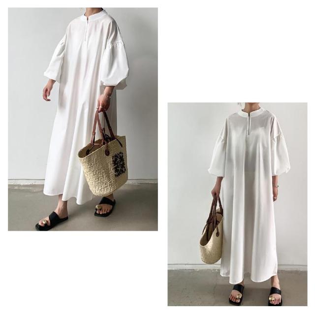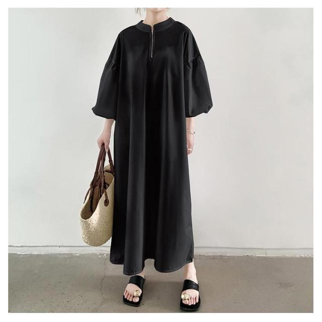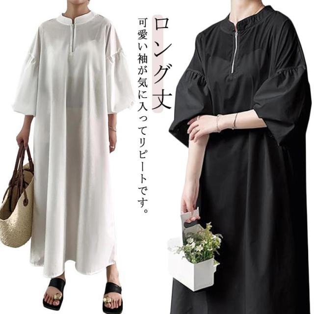 ワンピース ハーフジップワンピース ロングワンピース ボリューム袖 ハーフジップ ロング丈 オーバーサイズ レディース 2023秋冬 送料無料