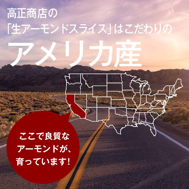 高正商店の「生アーモンドスライス」はアメリカ産!アメリカは世界一のアーモンド生産国です。