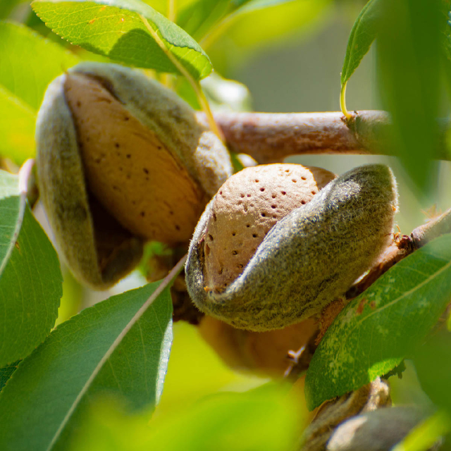 薄い果肉の中に現れる殻が「種子」で、種子の殻を割った種の部分が「アーモンド」です!