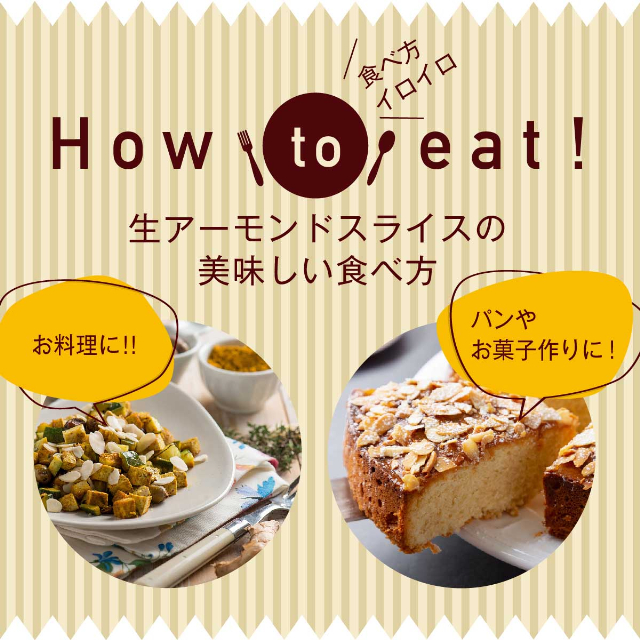 アーモンドはビタミンEやミネラル、タンパク質、食物繊維が豊富です。スライスされたアーモンドは自然な甘みがあり香りも良いため、美味しく栄養補給ができるのがおすすめポイントです!