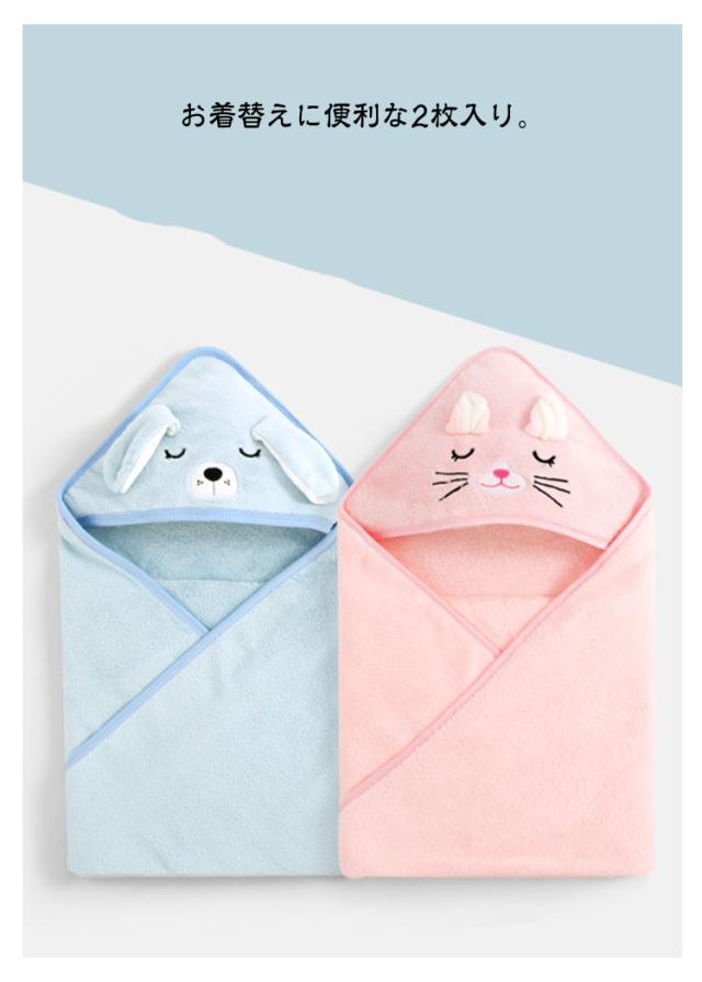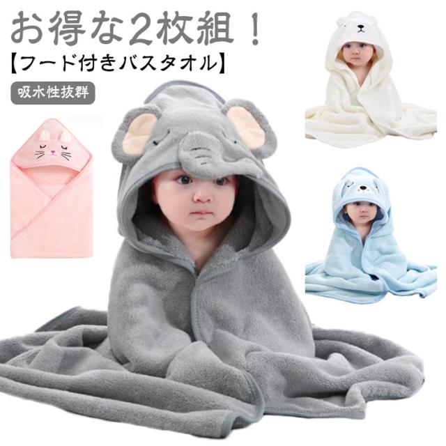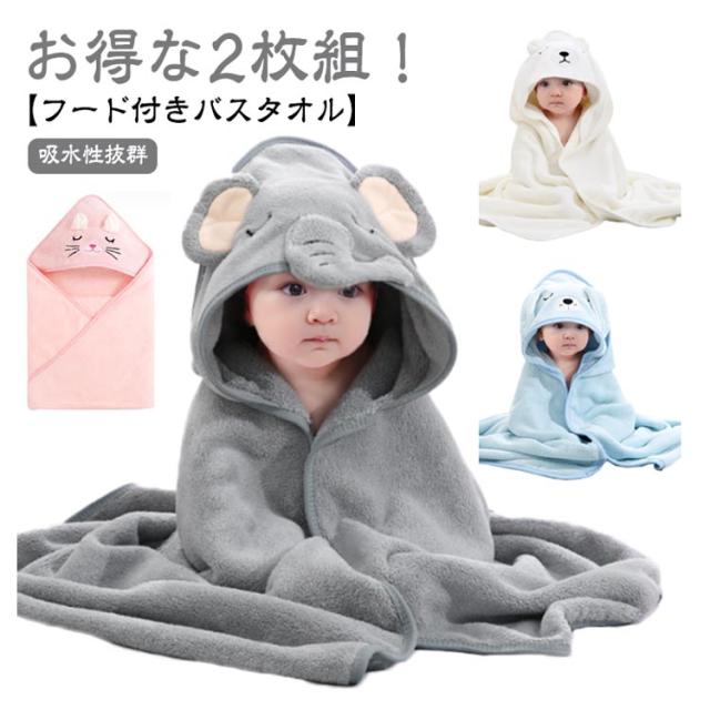 【2枚組】ベビー バスタオル フード付き ポンチョ 秋冬 赤ちゃん 男の子 女の子 タオル かわいい 新生児 お風呂 吸水速乾 バスポンチョ ギフト プレゼント 出産祝い お風呂上がり 着る バスタオル アニマル 動物 可愛い マイクロファイバー プール 水泳 クマ ベアー